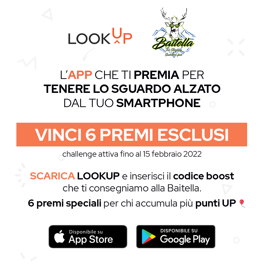 Per te 6 favolosi premi, basta attivare LOOKUP con il codice che ti viene consegnato alla cassa della pista e alzare lo sguardo.